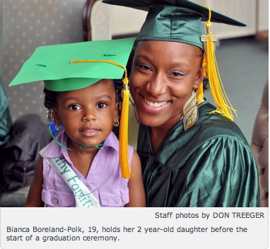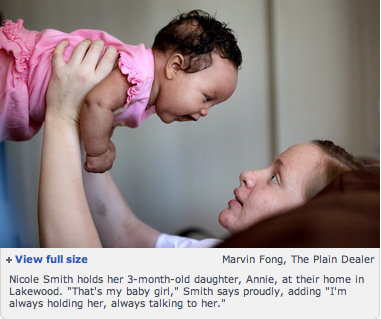 This photo of Saniyah Polk, 2, and her mother Bianca Boreland-Polk, 19, says it all. That kid has had a very engaging-faced mom in her face, don’t you think?