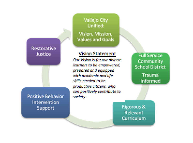 When Dr. Ramona Bishop walked into her office on April Fool’s Day in 2011, the Vallejo schools had hit rock-bottom: The system had been in receivership since 2004. Its 14,000 students were racking up nearly 80,000 referrals, suspensions, and expulsions that school year, making it one of the top ten suspending schools in the state. Academic scores had tanked. Only half the students were making it to graduation. And morale? What morale?