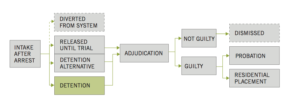 1. One is what happens on the way to the detention center where a kid is held until trial – i.e., how the system decides which kids must be locked up, and who can live at home or in a group home until their trial date.