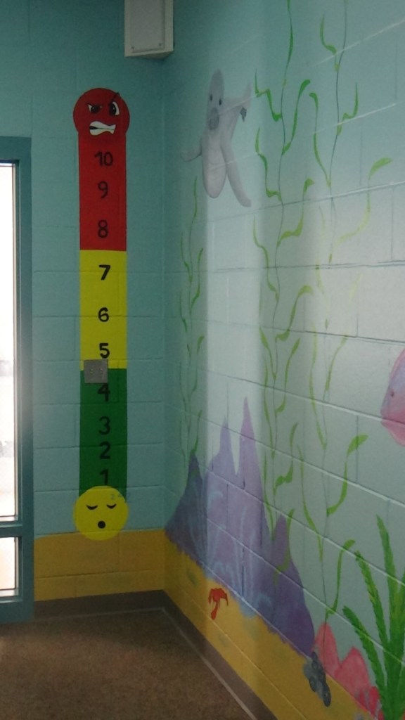 Since the MSDR opened, 2,212 of the residents have spent time in it. Upon entering and leaving, each person is asked to pick a number that indicates their current state on an emotional scale that’s painted on the wall: 1 to 4 means doing well; 5 to 7 indicates feeling stressed; and 8 to 10 shows that a young person is really upset and ready to explode. Data show that the room is making a difference. After a respite within in the room, the kids’ scores on the emotional scale have dropped an average of 4.5 points by the time they leave, with most reporting that they feel like they’ve returned to a calmer state. (Youth also go there to work with Clark on strategies to stay calm in preparation for a high-stress event, such as an impending court date.)